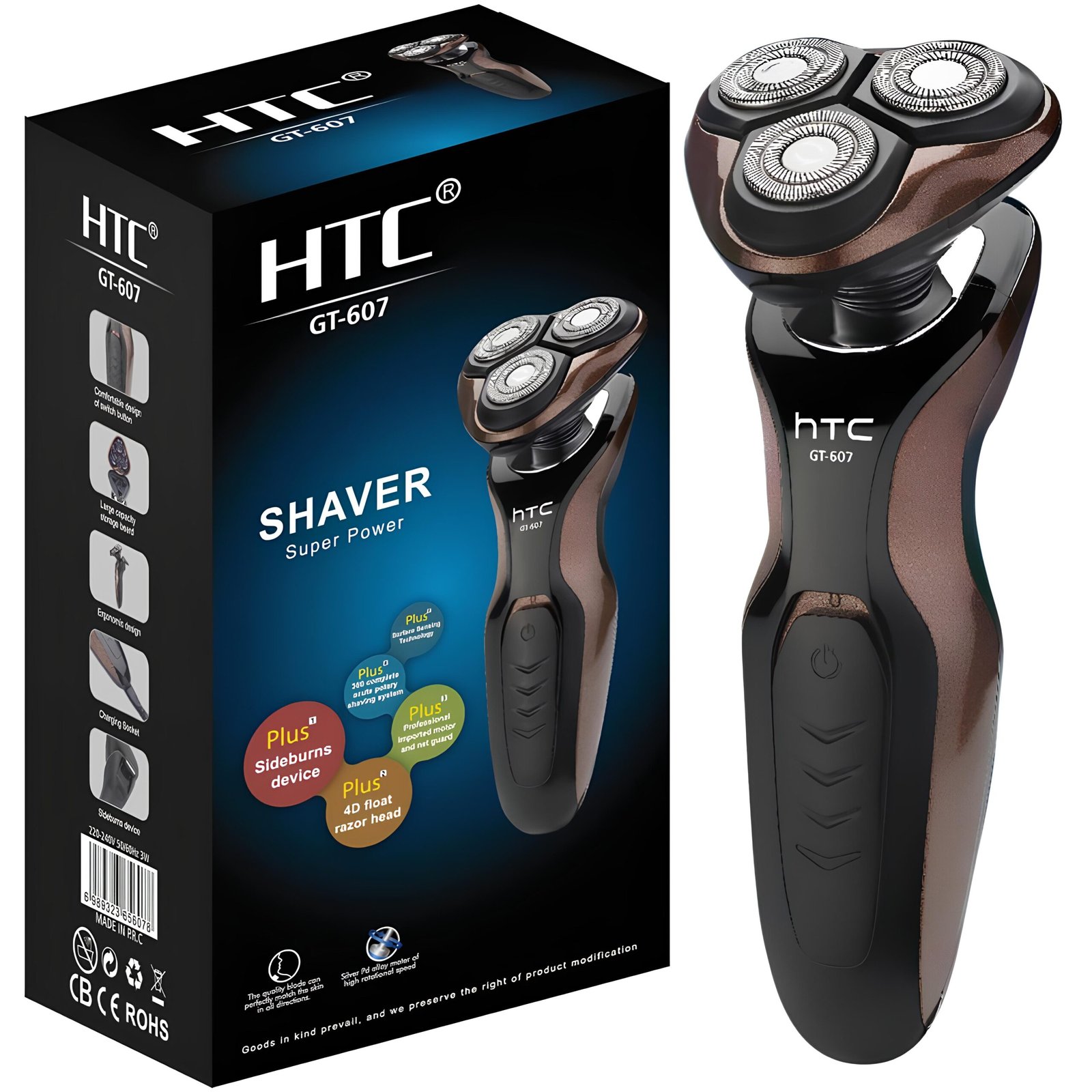Le rasoir électrique HTC GT-607 a été conçu pour répondre aux besoins quotidiens des hommes à la recherche d’un outil de rasage fiable, confortable et facile à utiliser. Avec sa tête rotative flottante 4D, il épouse parfaitement les formes du visage et du cou pour un résultat net, même dans les zones les plus difficiles d’accès.